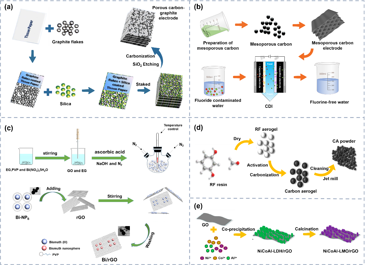 2、系统地回顾了各类除氟电极材料的制备策略和除氟效能。