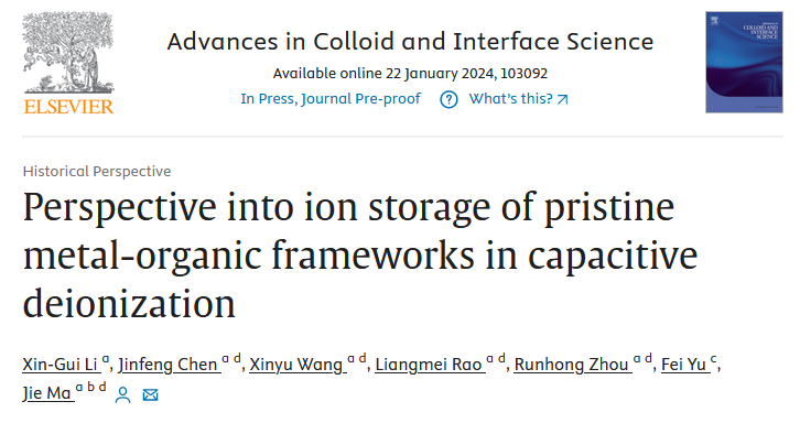 淡水资源需求的持续增长推动了离子分离(海水淡化)技术的发展。电容去离子(CDI)技术以其循环效率和可逆性而著称,也被认为具有与反渗透等最先进的海水淡化技术相同的优势。从探索具有更强离子存储能力和长期稳定性的纳米材料的角度开发 CDI,有望满足人类对淡水资源日益增长的需求。金属有机框架(MOFs)又称配位聚合物(CPs),是一种由金属节点和有机配体组成的结晶材料,具有高比表面积和高孔隙结构的特点。这种路易斯酸(金属离子/簇节点)-碱(配体)复合体即使稍加改性就能形成新的 MOF,也可能获得完全相反的物理化学性质。从理论上讲,通过合理设计和制备获得的具有理想理化性质的MOFs 也不应受到导电性、法拉第活性和水稳定性的限制。然而,迄今为止,MOFs 在 CDI 应用领域的研究明显少于其他领域。这可能是由于 CDI 在最近十年才蓬勃发展,针对 CDI 应用的 MOF 定制设计缺乏更多的理论依据。
