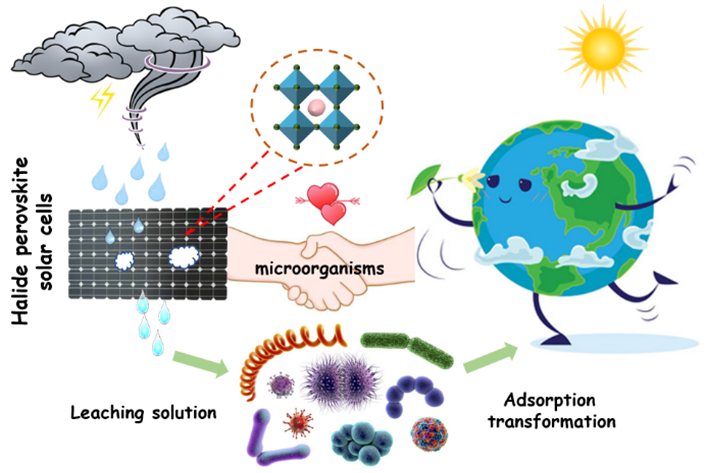金属卤化钙钛矿太阳能电池(PSCs)在新兴光伏技术中展现了日益增长的商业化潜力。然而,PSCs中如Pb(II)和Sn(II)等Mn+的潜在泄漏对环境和健康构成了重大威胁,而环境对这些威胁的应对能力仍然未知。本研究首次报告了环境自然修复在应对钙钛矿泄漏风险方面的潜力。结果发现,环境废酵母可以通过物理和化学吸附机制的结合有效捕获泄漏的Pb(II)和Sn(II)。这些钙钛矿重金属随后被生物转化并固定。此外,我们的研究显示,Sn离子的去除率更高,并揭示了采用无铅钙钛矿光伏材料的环境可持续性得到增强。本研究提出了一种微生物清除策略,用于去除环境中的钙钛矿泄露的Mn+,推动钙钛矿光伏技术的实际应用。