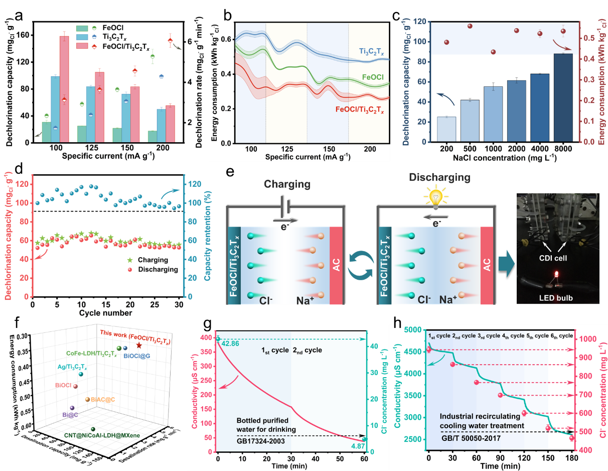 图4 FeOCl/Ti3C2Tx电极的脱氯性能测试