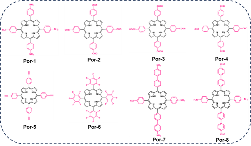 图 2 用于合成卟啉基 COF 的卟啉单体。