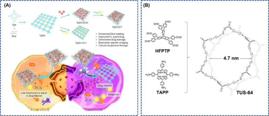药物递送涉及将治疗剂(特别是不溶性和不稳定的药物)封装或装载到纳米载体中,以成功运输到指定靶点。 这种方法减轻了全身副作用,延长了游离药物的半衰期,并增强了现有药物的疗效。因此,需要开发具有大表面积、高载药量、良好的生物相容性和多功能的药物输送载体。共价有机框架 (COF) 以其高表面积、多孔结构和实现高载药量的有利特性而脱颖而出。以卟啉和卟啉衍生物为结构单元构建的COF具有额外的优点,包括低毒性、优异的生物降解性以及对正常组织的最小副作用,使其成为药物输送载体的有力候选者。