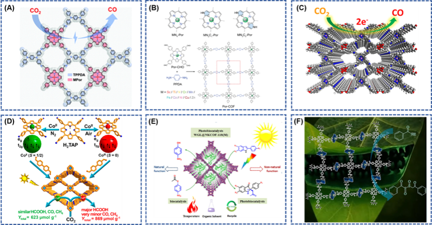 生物体通常含有金属卟啉,例如叶绿素中的镁卟啉和血红蛋白活性中心中的铁卟啉。 这激发了人们对基于金属卟啉衍生物的仿生催化的极大兴趣,参与各种过程。利用优异的仿生活性和催化稳定性,基于卟啉的共价有机框架(COF)在多种催化反应中表现出卓越的性能,包括二氧化碳还原、光催化氢和氧生成以及化学合成。 解决以电化学方式将二氧化碳还原为有价值的碳氢化合物和化学原料(醇、醛、酮等)的挑战,是减少二氧化碳排放和应对能源挑战的一种有前途的技术方法。然而,电化学CO2还原中的反应速率低、中间体选择性生产率差等问题仍然存在。卟啉基 COF 催化剂在电化学 CO2还原过程中的优势在于其促进气体吸附转移的能力。这些催化剂具有高比表面积、可调孔隙率和规则有序的结构。 这些特性使基于卟啉的 COF 成为电化学CO2还原的有效选择,有助于发展可持续和有效的方法来最大限度地减少碳排放。