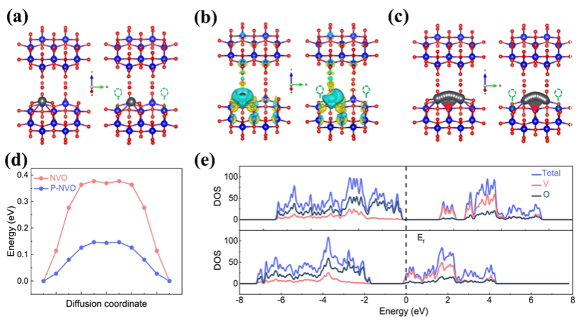 3.3.离子插层机制:法拉第材料通过离子插层与氧化还原协同作用实现选择性吸附。Li等人利用等离子体处理的钒酸盐(P-NVO)电极优先吸附Pb⟡⁺,氧空位(OV)的引入使扩散能垒从0.38 eV降至0.15 eV(图6c-d),DOS分析(图6e)表明OV提升材料金属性,增强导电性。Tang团队设计的Mn₂CoO₄@MoO₂电极通过插层-氧化还原协同机制捕获Pb⟡⁺:Pb⟡⁺插入MoO₂层间引发[MoO₆]⁴⁻→[MoO₄]⟡⁻转化,形成PbMoO₄(图7a),蒙特卡洛模拟(图7b-c)与DFT计算(图7j)证实Pb⟡⁺结合能显著高于其他离子。此类材料对离子价态、水合半径及晶体结构的敏感性为选择性设计提供新思路,但插层材料对一价离子的本征偏好仍需调控。