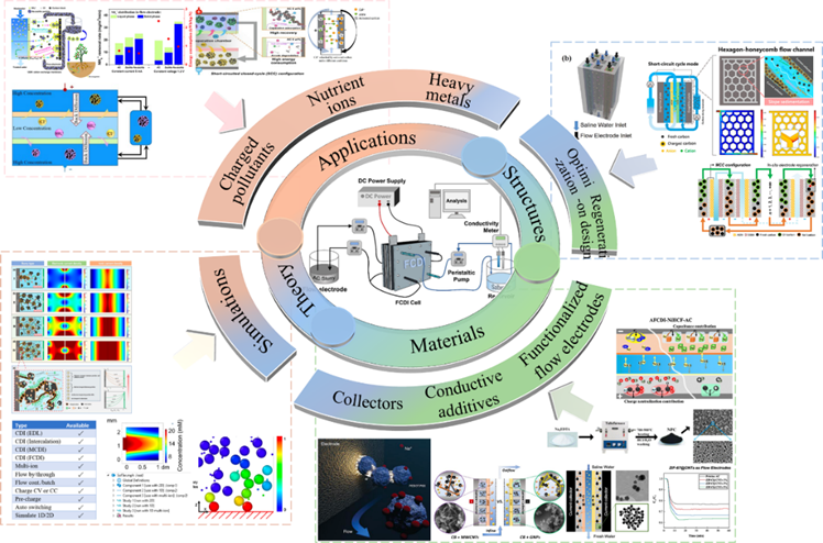 这篇综述总结了以 FCDI 性能优化为核心的反应器结构和流动电极性能的优化。基于对基本 FCDI 操作模型的回顾,提供了对 FCDI 的扩展和优化设计的见解,并研究了不同类型的堆叠配置之间的差异。结合最近用于材料优化、运行模式优化和反应器结构优化的热力学能效比较,我们评估了开发材料和优化结构在降低能耗方面的作用,并讨论了 FCDI 的当前性能和关键优化方法。最后,我们讨论了 FCDI 的新兴应用和紧迫问题,同时展望了有吸引力的未来研究方向。