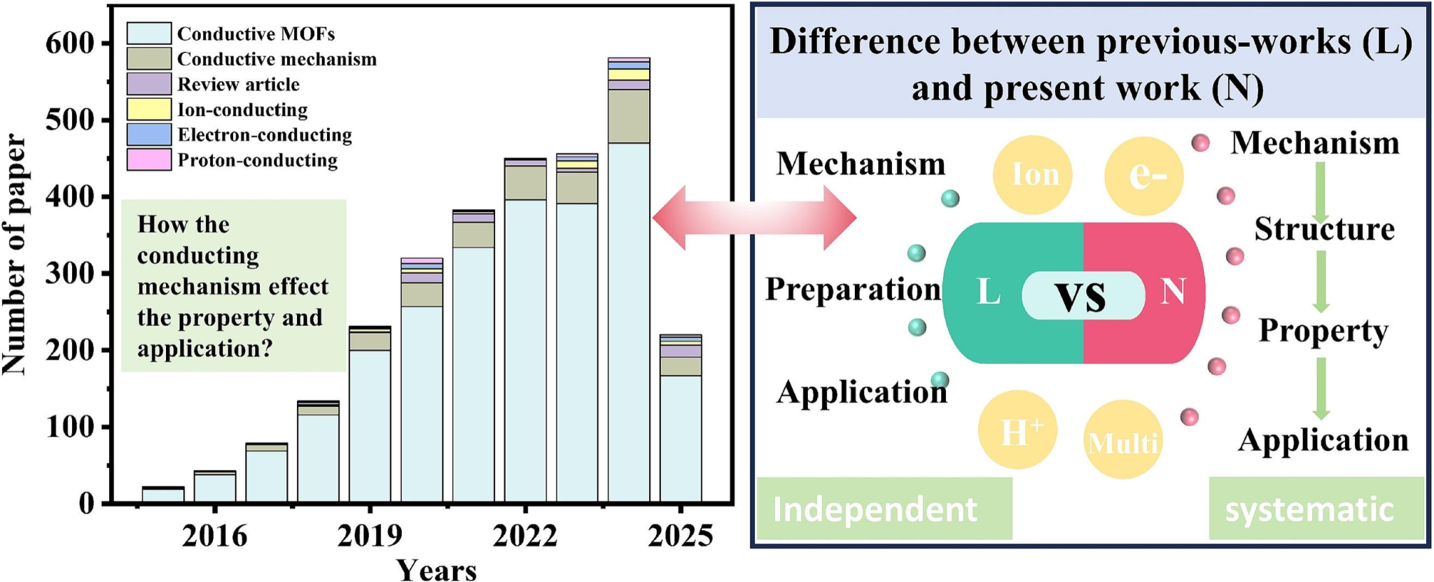 图1. C-MOFs及导电机制论文发表及研究情况