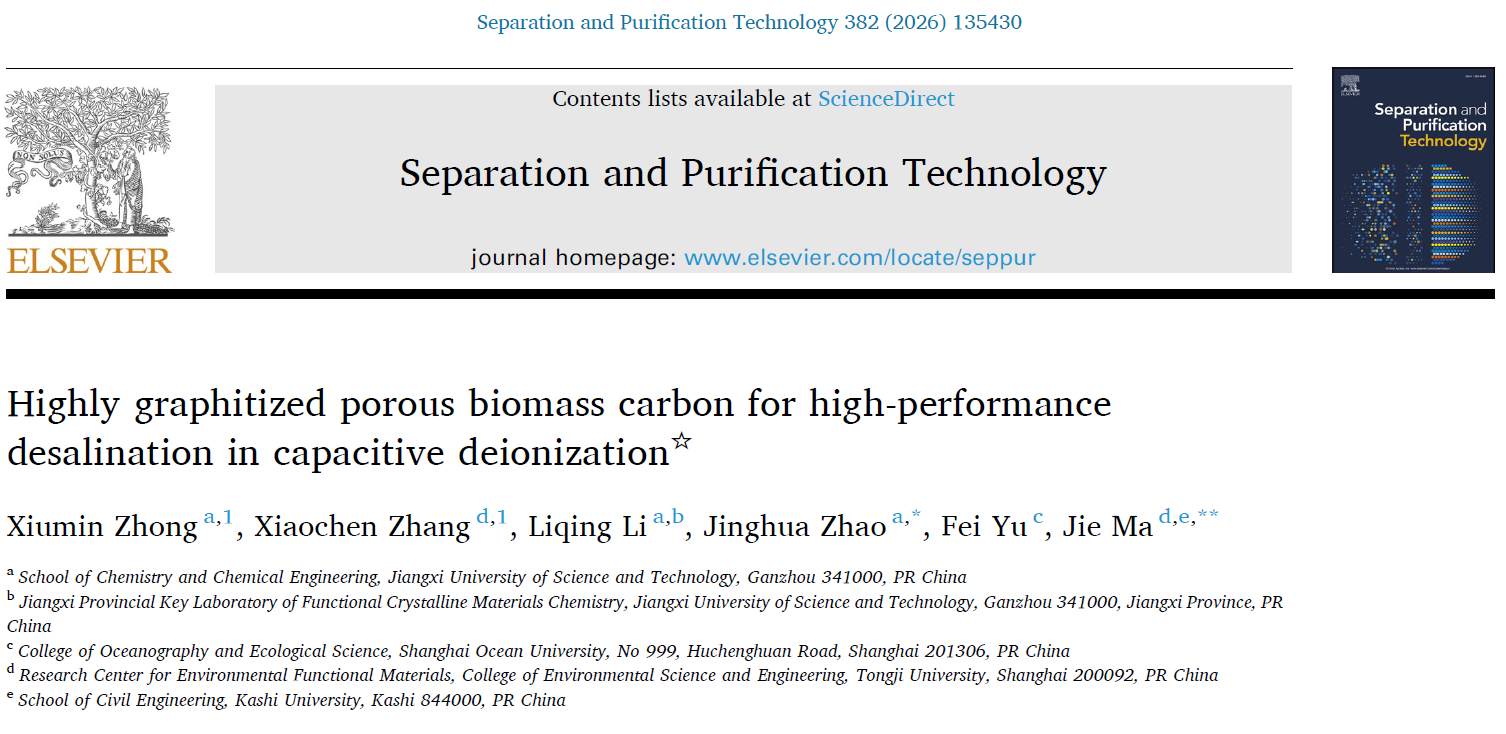 电容去离子(CDI)电极材料需同时具备快速离子传输通道与高效电子导电网络以实现高效脱盐性能。江西理工大学李立清团队与同济大学马杰团队提出以原始沼液为碳源兼反应介质,开发出K₂FeO₄辅助一步热解制备高性能碳材料新方法。该方法利用沼液自身水分实现K₂FeO₄水解,并通过其有机组分热解转化,同步完成孔道构建与石墨化过程。所得沼液衍生炭(PE-800)具备高比表面积(312.74 m⟡·g⁻¹),介孔占比达80%,其分级多孔与高度石墨化结构为离子/电子协同传输提供理想通道。该电极在1.2 V电压下盐吸附容量达99.09 mg·g⁻¹。该研究不仅为沼液资源化利用开辟新途径,更为CDI技术工程化应用提供了材料基础与工艺方案。