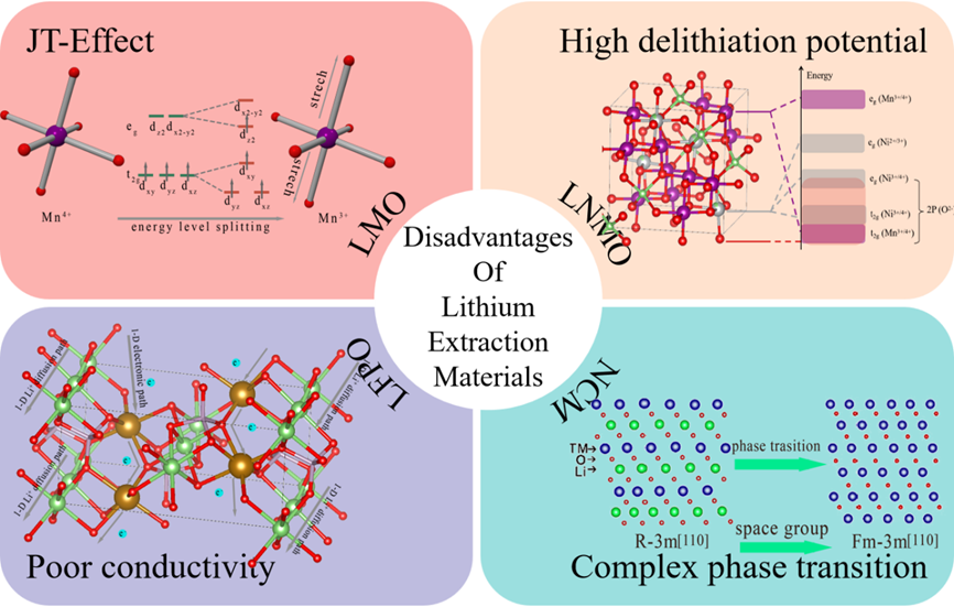 Figure 7. Disadvantages of lithium extraction materials (Schematic diagrams of the NCM have been copyrighted for use at ELSEVIER).