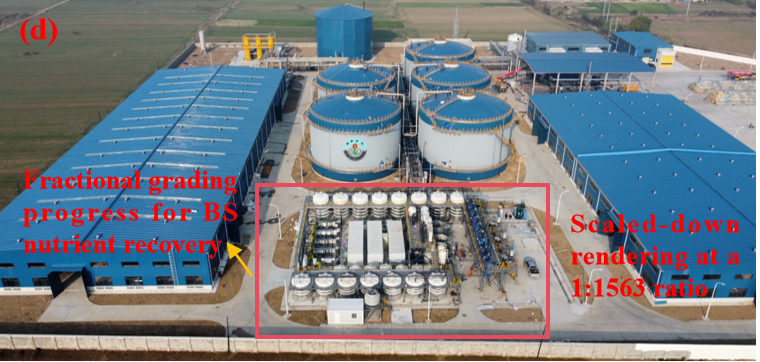 图8显示技术经济与环境效益评估。经济分析表明,该工艺处理每立方米沼液的总成本为14.60美元,而产出的有机肥浓缩液和氮钾浓缩液价值达16.01美元,净收益约1.41美元·m-3。与直接农灌或生化处理相比,该工艺不仅能实现盈利,还能减少6.61 kgCO2·m-3的碳排放。在阜南示范工程(200吨/天)规模下,年经济效益可达10.3万美元,碳减排482吨。研究进一步估算了该技术在全国乃至全球沼气行业推广的巨大经济与环境潜力。