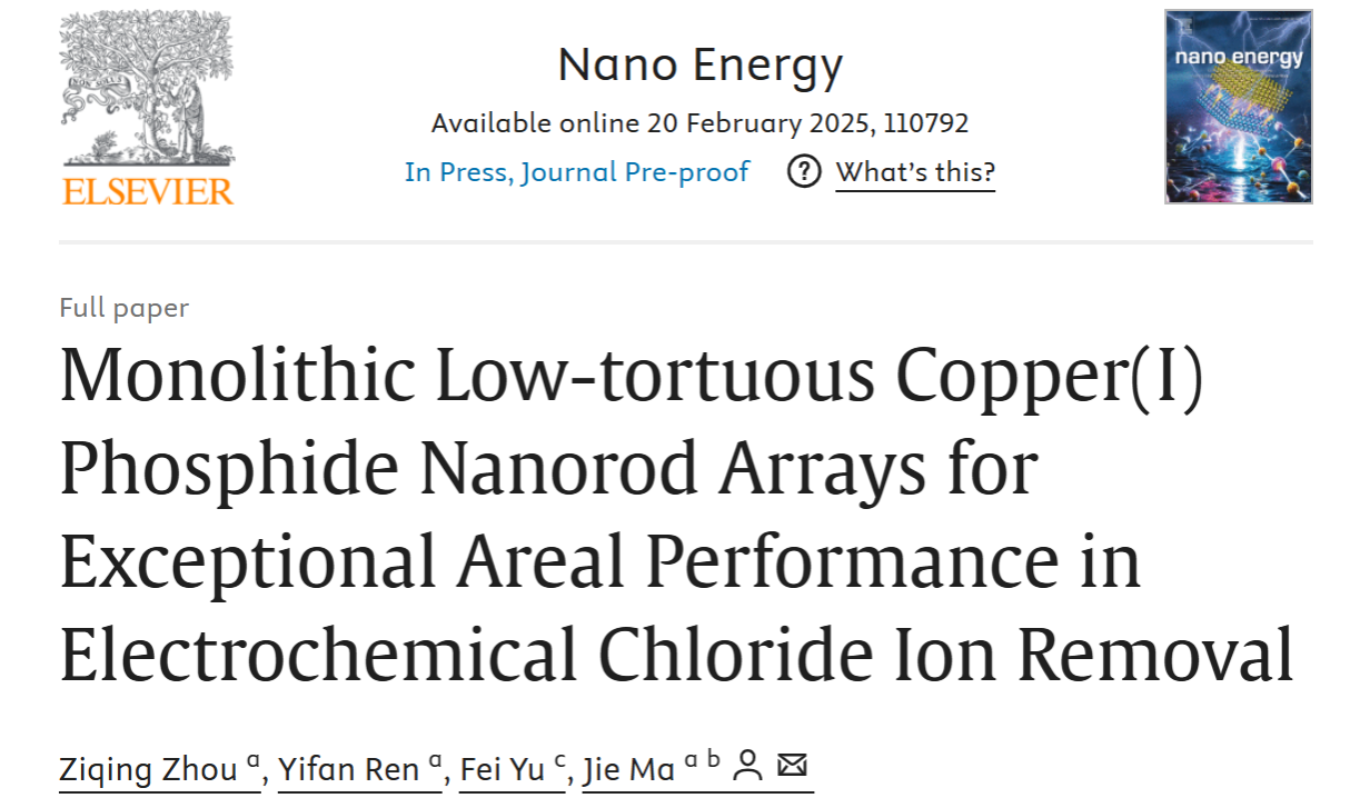 电化学去离子(EDI)技术凭借其低二次污染、低能耗及易于再生等显著优势,已成为除氯领域的研究热点。然而,当前应用于EDI的电极材料主要局限于基于双电层电容机制的碳基材料及基于转化反应的Ag/Bi基材料,这些材料普遍存在比容量有限、反应动力学迟缓等问题,严重制约了其在高效去离子领域的实际应用。因此,开发具有高容量、快速反应动力学及优异结构稳定性的新型EDI阳极材料成为亟待突破的关键科学问题。