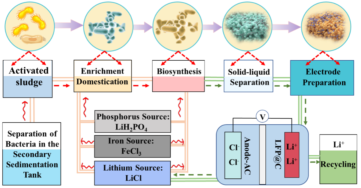Figure 1.Schematic illustration ofBio-green synthesis of small-sized, low-concentration antisite defects LFPs for Li+recovery in a full-chain route.
