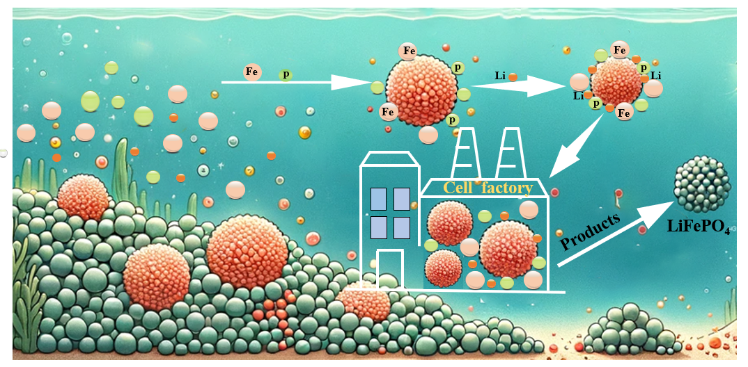 微生物“代谢催化”是一种具有吸引力的小尺寸材料合成方法,通常在常温、常压等温和条件下进行,因此投资少、能耗低且安全性高。“代谢催化”过程是由氧化还原酶、异构酶、裂合酶和合成酶等多种酶共同作用的结果,这些酶高度专一,催化效率比常规化学催化反应高107~1013倍,从而保证了目标产物的快速、可控合成。微生物代谢催化是构建空位的有效策略之一。这一过程涉及微生物通过新陈代谢和组装将金属离子转化为含有缺陷的无机化合物。微生物的转运蛋白和氧化还原酶等活性分子可加速产物的转化和合成。通过微生物新陈代谢引入缺陷的研究现已取得阶段性进展。此外,“代谢催化”在合成材料的稳定性方面具有独特优势,微生物分泌的酶可作为还原剂、封盖剂和稳定剂等,通过代谢和组装提高合成产物的稳定性。已有研究通过使用还原细菌,如希瓦氏菌属(Haejae-1),将Fe3+还原为Fe2+,从而在常温厌氧条件下合成LFP,但这种厌氧细菌培养困难、合成条件苛刻、合成周期长,并未表现出独特的优势。此外,目前关于利用微生物“代谢催化”功能制备低浓度缺陷LFP的研究尚无,同时如何进一步提高LFP的Li+选择性能仍面临严峻挑战。
